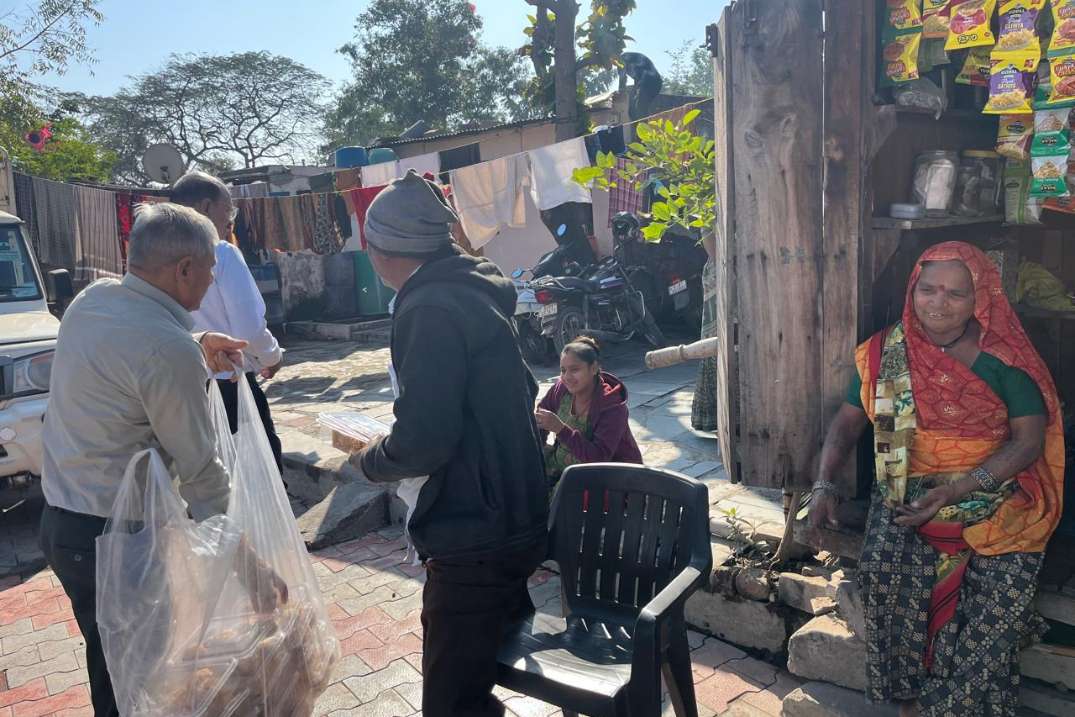 Distribution of Rajgira-Mamra Laadoos, Sing-Tal Chikki and Sukhadi boxed (weight 500 gram approx) together on auspicious day of Makarsankranti to fight a noble cause of hunger.