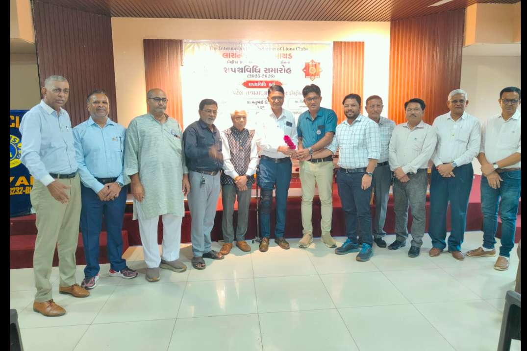 Appreciation The swearing-in ceremony of the new president of Boyd Lions Club was held on 26-09-2025. Modasa Lions Club President Shri Niravbhai Chauhan and the Lions team honored the new president of Boyd Lions Club, Manubhai Patel, by giving a bouquet of flowers. Modasa Lions Club President Niravbhai Chauhan, Treasurer Jigneshbhai Patel, DC Membership Rural Praveenbhai Chauhan, Zone Chairman Pareshbhai Shah, Lion Manojbhai Upadhyay, Lion Pankajbhai Prajapati were present.