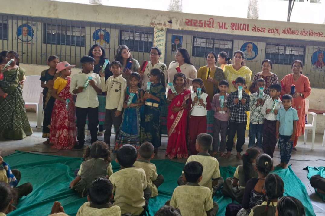 Stationary kit distribution at government school sector-20, Gandhinagar, where 400 kids were the beneficiaries. These kids were given not just the kit but the smile, the reason of a smile on their face.