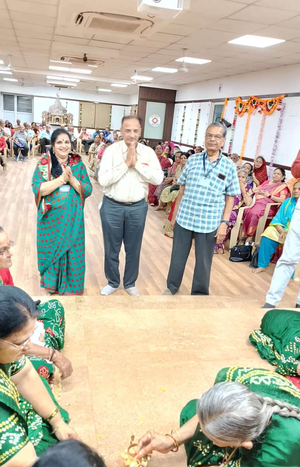 Lions club of Suvichar and Varishth group has organised Aannd no Garabo on First Day of Navratri on dt. 22. September Monday among sinior citizens. A group of Gota mahila mandal has performed the Stuti of Ganesh ji and All aadarniya Mataji by slok along with music.Avery good holy atmosphere created .90 members has attended the function. 5 Lion members also present including our club president Lion Bina Garg.