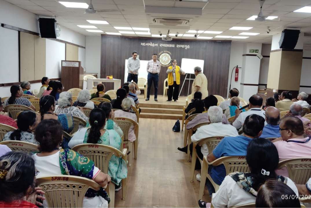 At Sadvichar parivar Varishth group meeting Doctor Chinu Bhai Kikani has discussed among senior citizens regarding Mental Health care .90 members has attended the event including 8 members of Suvichar club with Club president Lion Bina garg.