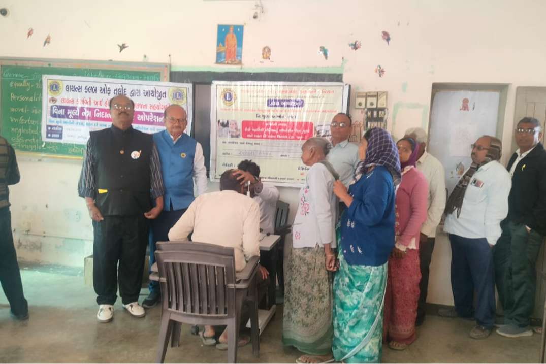 Eye check up camp Ghadkn lion club talod and karnavati eye hospital Ognaj na sahogthi Ghadkn mukame csmp talod Lions club talod 251 pesant 180 pesant ne chasma nu vitran 11 pesant ne motiya na operation mate Karnavati eye hospital Ognaj ma Dt27/1/2026 na roj mokli apya