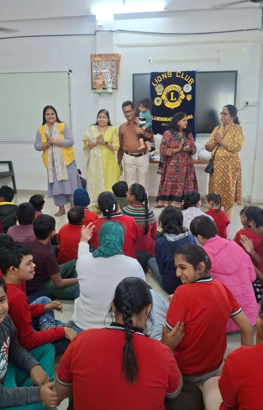 Lions Club Gandhinagar Femina organized a joyful and entertaining program for the children of the Special Ability and Therapy Center. During the program, the club members actively participated and danced along with the children, creating a lively and encouraging atmosphere. Dancing with the children and motivating them brought visible happiness and smiles to their faces. As a token of joy and engagement, blowing whistles were also distributed to the children, adding to their excitement and overall enjoyment of the event. This program was sponsored by our club member for his grand son's first birthday