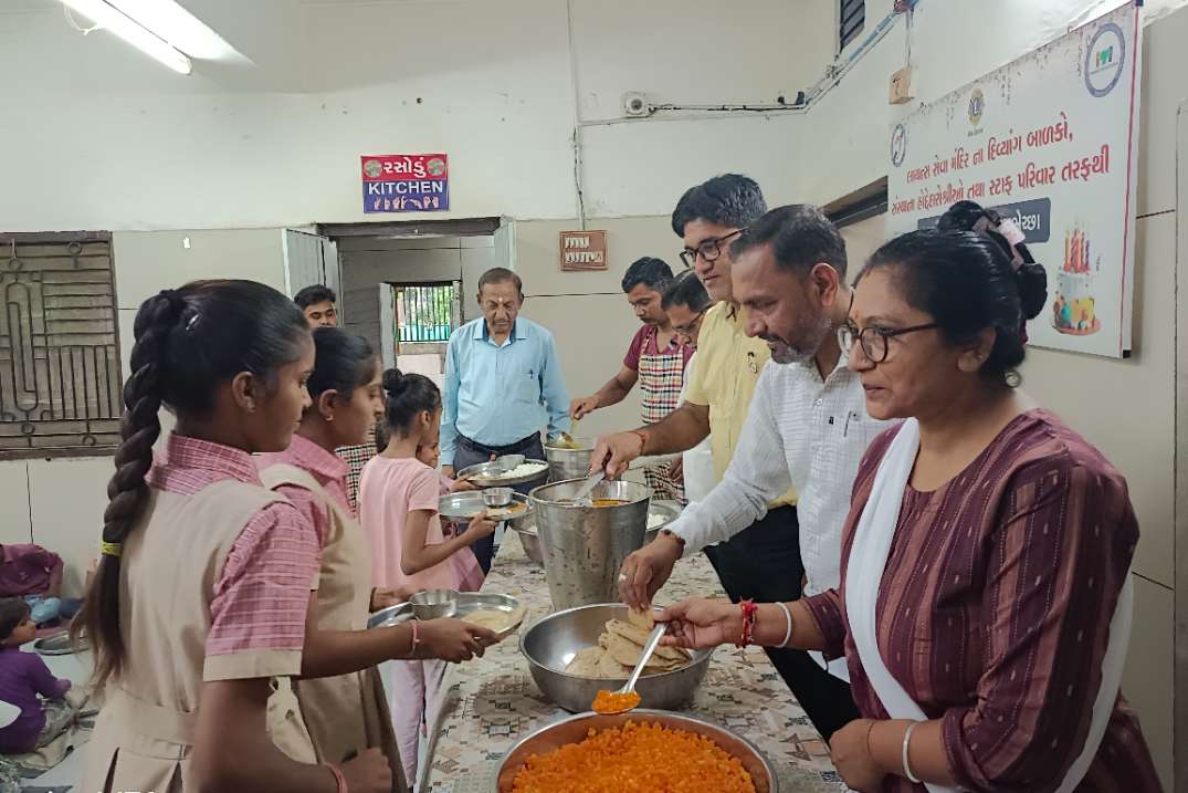Food for HUNGER Today, on the occasion of the birthday of Maheshbhai's daughter Ayushi, a Tithi meal was served to all the disabled children of Lions Seva Mandir... A cheque of Rs. 21000 was presented by Maheshbhai for the permanent birthday Tithi meal... President of Lions Club of Modasa Shri Niravbhai wished his daughter Ayushi a happy birthday and thanked Shri Maheshbhai... Shri La. Praveenbhai Chauhan D. C Membership Rural was present in this program.