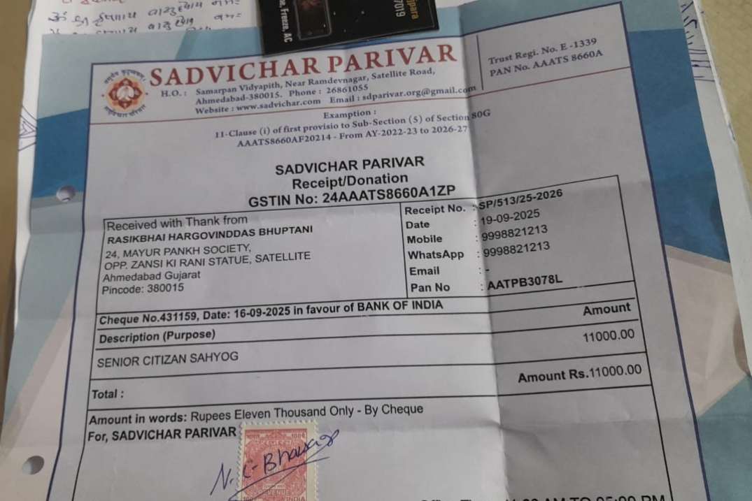 Our club Active member Lion Rasik Bhuptani has donated Rs.11,000 to Sadvichar parivar , Ahmedabad for support in Medical project of the unit.we highly appreciated the noble cause done by our lion member Rasik Bhuptani for his generous for Medical Social work in the society.