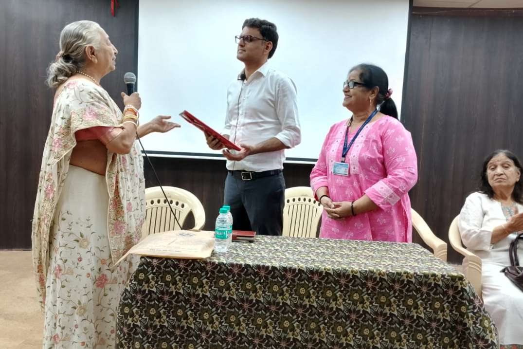 Suvichar Lion and Varishth group has organised a talk Show for Senior citizens regarding Knee Surgery . During Talk show Dr. Darshana Thakkar give lecture on Knee Surgery requirement..80 members attended including 7 lion members including club president Lion Bina Garg.