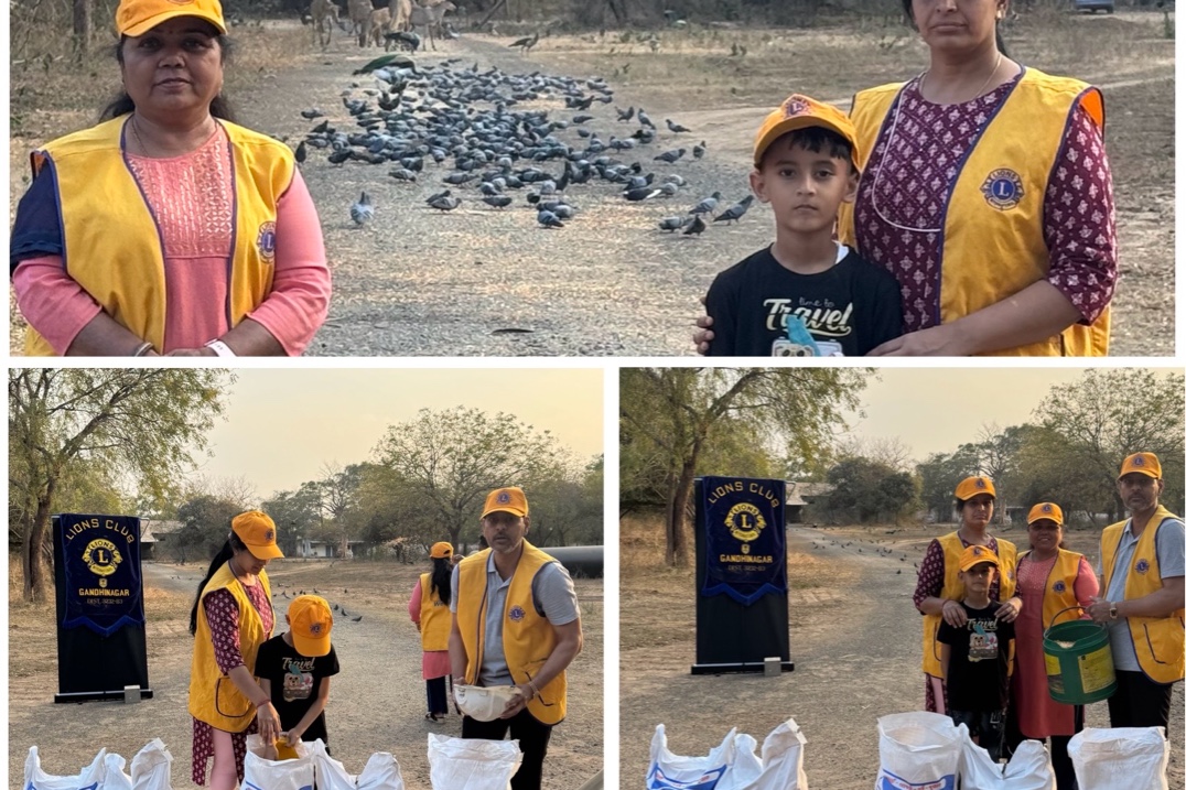 Hello friends 🙏 lions club of Gandhinagar On 24/02/2026, a program of Jivdaya was organized by the active president of Lions Club of Gandhinagar, N. Ayujn. In which 90 kg of sorghum and 60 kg of maize were fed to the birds at Charedi.
