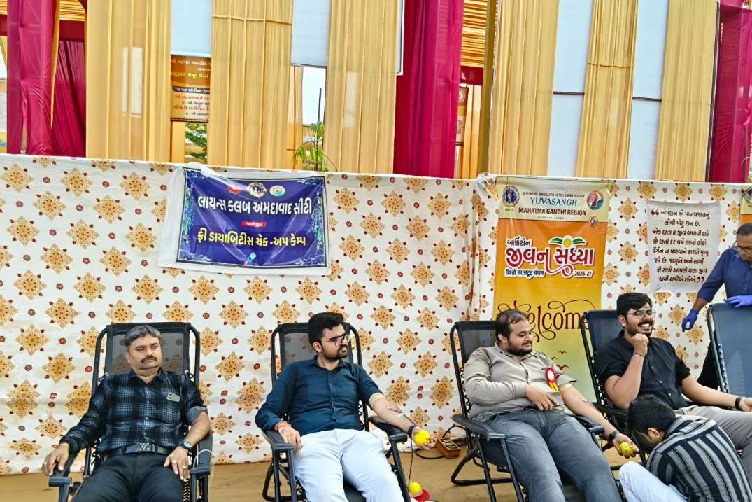 સવારે 11 વાગે બ્લડ કેમ્પ નું આયોજન ઉમિયા કેમ્પસ સોલા ખાતે કર્યું.