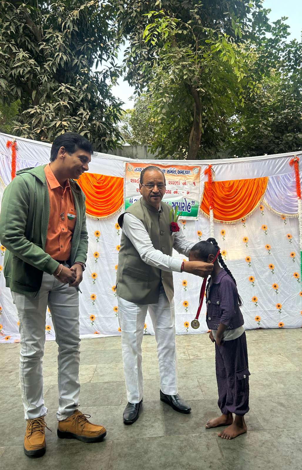 The Republic Day of India was celebrated at Shahibaug Municipal School No. 6 by the Lions Club of Ahmedabad Vibrant. The National Flag was unfurled in the presence of club members and school authorities. Around 550 beneficiaries including students and staff participated. During the celebration: • 160 Cello Company Water Bottles were distributed. • 550 Laddoos were distributed to students. • 7 Medals were awarded to deserving students. The program concluded with patriotic spirit and enthusiasm.
