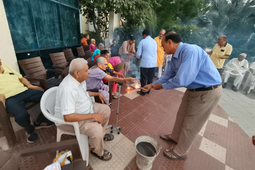 Diwali celebration in Vatsalya Senior citizen home vadaj in celebration we hamne patakhe fode or vruddho ko mithai di or nashta karvaya