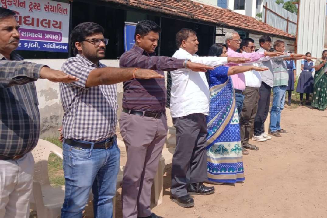સવારે 11 વાગે ગાંધીનગરની સરસ્વતી વિદ્યાલયમાં વંદેમાતરમ ગીતનું સમૂહગાન કરાવ્યું અને સ્વદેશી વસ્તુઓ જ વાપરવાનો આગ્રહ રાખવાની પ્રતિજ્ઞા લેવડાવી.