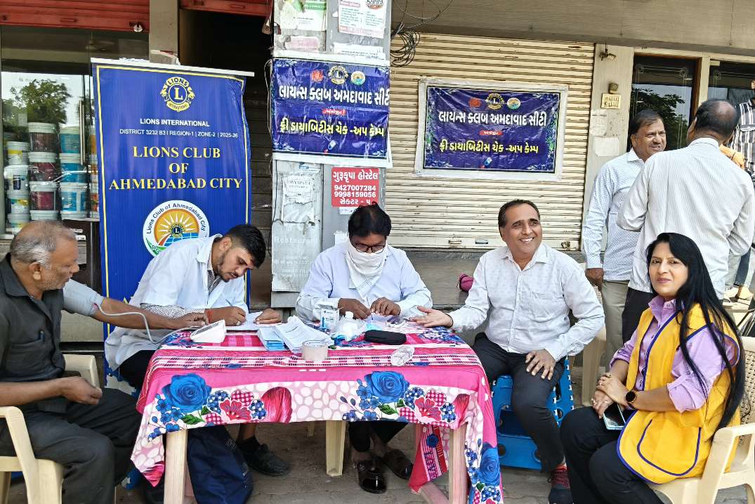 સવારે 11.45 વાગે ગાંધીનગર નાગરિક કો ઓપરેટીવ બેંક સામે ડાયાબિટીસ અને બીપી ચેકઅપ કાર્યકમ કર્યો.