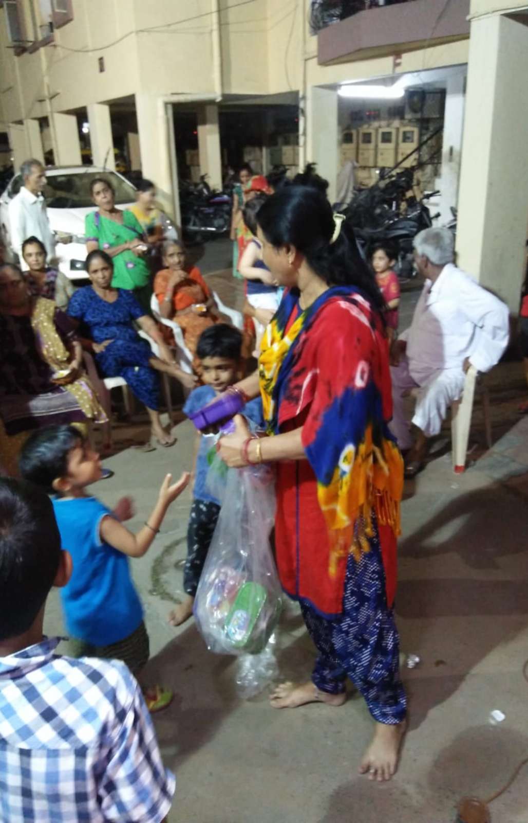 ઓગણજ વિસ્તારમાં આવેલી હાઉસિંગ કોલોની માં બાળકોને નાસ્તાના ડબ્બા વહેંચ્યા.